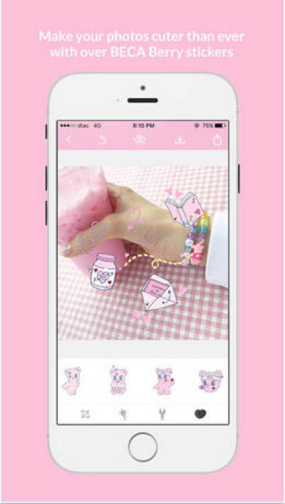 beca berry安卓版是是一款手机滤镜软件,所有的滤镜、贴纸都非常的可爱,以粉丝为基调,各种卡通、小动物,绝对让你爱不释手,只需看一眼女生就爱会这款滤镜软件的,不管是用来p图、还是拼图绝对让你可爱又减龄,喜欢的朋友赶紧来下载吧。