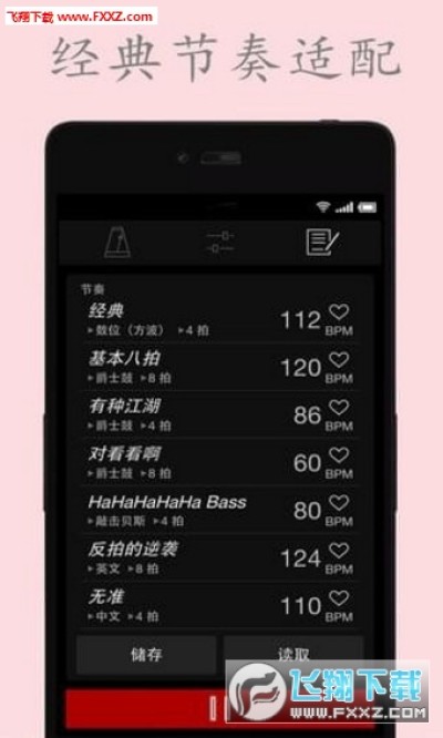3、 自主调节各种节奏的音律直至调出所需节拍;