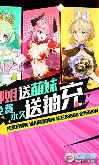 ★后缀说明:送御姐萌妹永抽充:免费送SSR御姐莉泽萝、SSR萌妹布兰琪、免费永久领招募券、签到天天送真充!