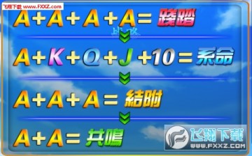 卡牌左上角的“A”代表了次卡牌的花色,类似扑克牌,还有其他“K、Q、J、10”等花色,