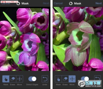 涂抹的“画笔”有近手指接触面这么大,能涂抹出非常大的区域面积,橡皮擦工具也亦然。识别出的主体会以浅绿色覆盖,而双指手势可使Tadaa无需切换工具进行缩放和移动。在启用“Detect Edges”后,能和After Focus一样自动识别边缘,因而相比于需要精细画线的After Focus来说,对于较为突出的主体,Tadaa更为快捷。