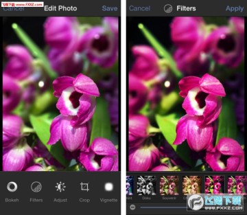 最后,软件自带简单的滤镜效果,梦幻感再加一倍,您还可以按照需要对图片进行裁切,功能虽然简单但却非常实用。最后点击右上角的“Save”字样,就能保存您的景深大作了。