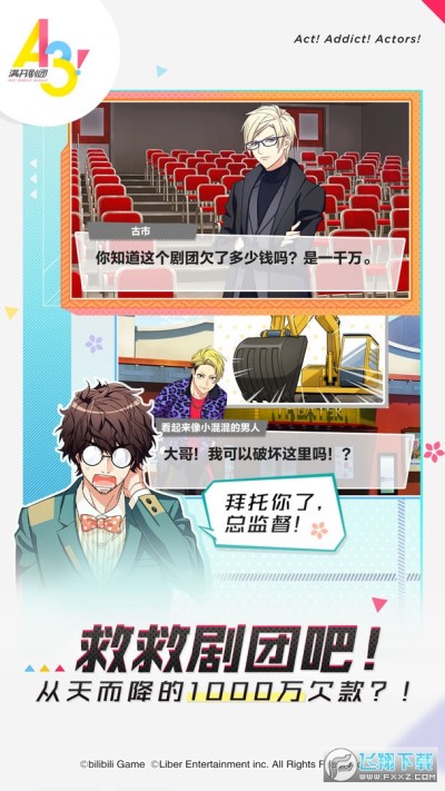 你作为女主角,竟然是一个负债累累,濒临破产的剧团总监督?!目标是为这个剧团招募到二十名帅哥演员,并与他们一起生活,一同成长,让他们在舞台上绽放出最美的艺术之花!豪华声优阵容,主线剧情全语音!由玩家成为剧团的团长兼“总监督”,让分别属于春组、夏组、秋组、冬组的还是萌芽状态的剧团团员们,在舞台上绽放自己的风采!一起等待剧团开演吧!