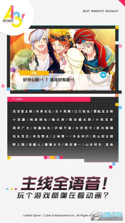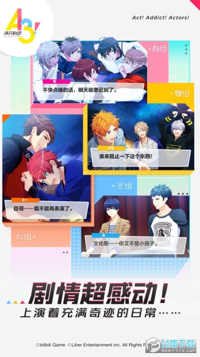 A3!满开剧团bilibili国服正式版是一款日本人气剧团养成游戏!A3!满开剧团为国服音译版,游戏由bilibili正式代理!游戏画面可爱清新,人设精美,玩法丰富,美好的男团后宫等你来宠幸!感兴趣的小伙伴们欢迎下载体验哦!