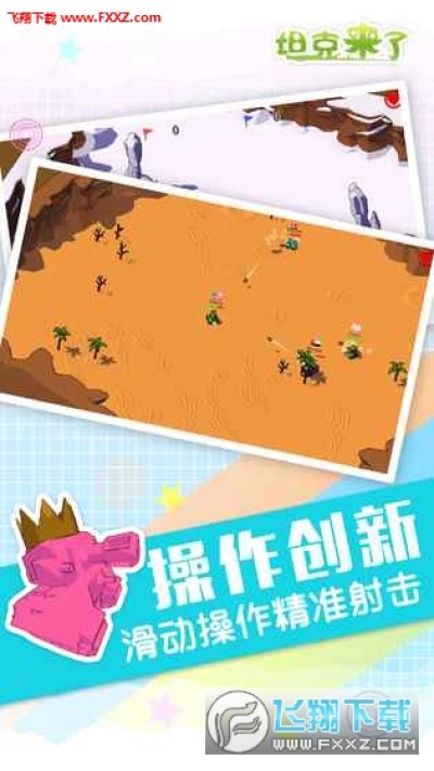“坦克来了”是一款3D坦克射击类游戏,画风半写实,主要场景分为沙漠战场和雪地战场两大块。3D画面让游戏场景更加震撼,半写实画风在营造真实感基础之上,突出弹道和爆炸效果,使游戏更加酷炫。本作在射击体验和操作手感上全新升级,弹道不再是平直设计,而是抛物线,真正让坦克射击从“线杀”回归“点杀”。射击操作上,左右开弓,两手分别控制移动和炮塔,左手负责移动坦克,通过右手手指滑动控制射击距离和射速,开启全新射击体验,使坦克射击更具手感。
