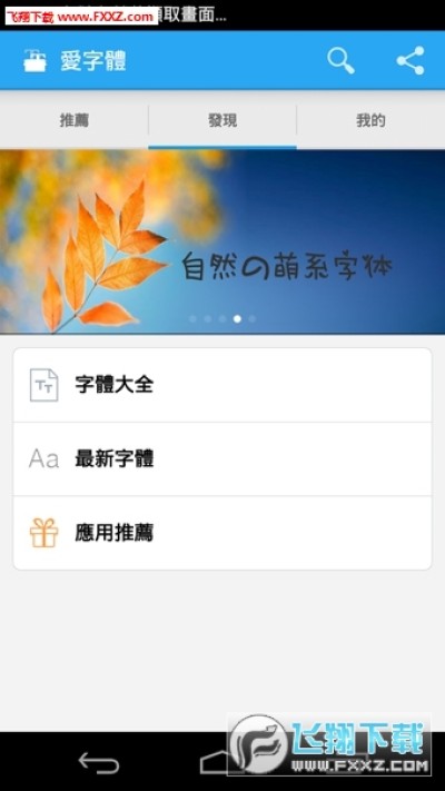 爱字体是一款全新的手机字体美化软件大师,集成上百款精美可爱的中英文字体,最新最全的英文、简繁体字库。轻轻松松换字体,简简单单换心情!字体随心变,个性我主宰!让单调的手机界面焕然一新,我的个性你无法抄袭!让你在每一天拥有快乐的心情,爱生活,爱字体。