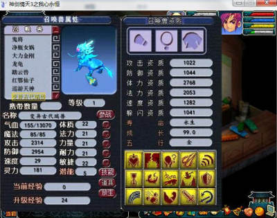 2、修改了变异瑞兽的成长为 99.0 ,满技能,其它宝宝未曾修改 (成长高,级别高时很恐怖的)