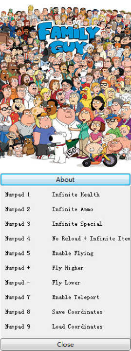修改器对应32位和64位,请玩家根据情况选择适合的版本.恶搞之家:回归宇宙是一款动作射击游戏,根据美国著名动画《恶搞之家》改编的。游戏采用卡通人物形式来制作相当有意思。这款恶搞之家:回归宇宙游戏最大的点是线双人合作以及本地四人互动,可以与好基友一起来玩耍哟。