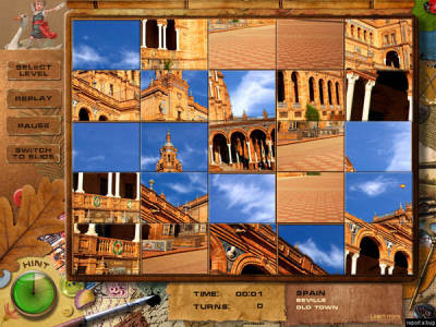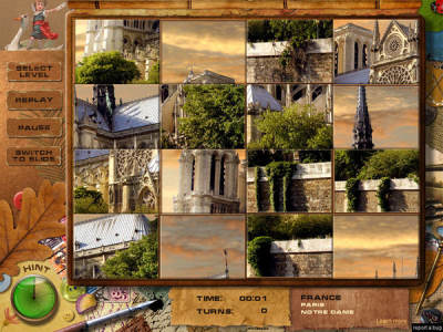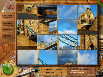 美景拼拼凑是一款拼图类的休闲益智游戏,游戏是以欧洲各国的风景作为主题进行拼图。每一个国家就是一个关卡,以其美景图案作为拼图图案,让玩家在娱乐的同时欣赏到异国的美景。游戏分为两种拼图形式,交换和移动,随着游戏的进行,拼图的难度也会越来越大,从一开始的4X4演变到后来的4X5、5X5等等。其续作美食拼拼凑只是把其中的图片改了改。