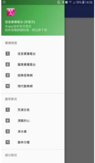 广播频道:佳音广播电台、罗东广播电台、经典音乐网、现代圣乐网。
