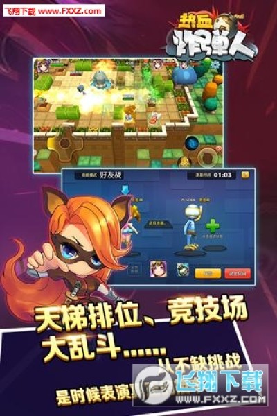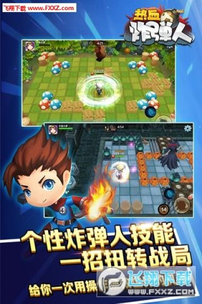 《热血炸弹人》手游为玩家提供了丰富的游戏系统,通过”英雄系统“,玩家可以收集到各种风格能力迥异的英雄,去应对不同的挑战;通过“换装系统”,玩家能够进行个性英雄变装,战斗也要美美哒;通过武器系统,玩家可以更换不同的炸弹,来获取不同的攻击效果;通过“道具系统”,玩家可以在战斗中获得英雄加速、爆炸半径,爆炸威力等随机能力增强道具,让战斗更有乐趣;通过“好友系统”,玩家可以邀请好友组队战斗或建立战队,一起并肩作战。更有世界BOSS,狩猎模式等多种元素的加入让游戏内容更加丰富。