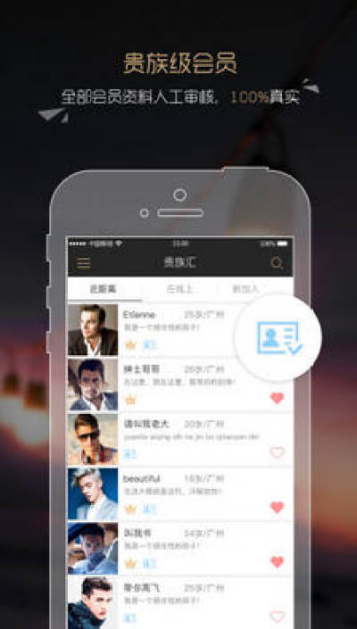 作为面向全球华人成功人士与魅力甜心的社交APP。全部用户经过官方审核,真实的净资产1000万以上的成功人士和真实的来自各行各业的高颜值女性在这里相遇相识。