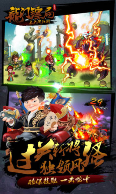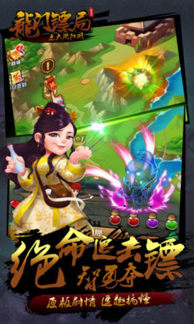 《龙门镖局之大闹江湖》是一款融合了RPG与三消玩法的休闲游戏。游戏以龙门镖局的故事剧情为主线,通过一系列冒险、探索等闯关任务,让四个主角人物得到成长。游戏中设计了极具特色的人物技能,也配备了不同属性的角色武器;玩家可以在游戏中自由组合,在探索和闯关中获得极佳的游戏体验。