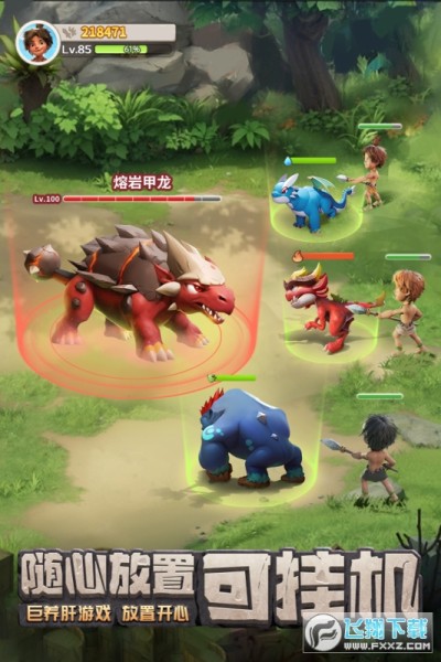虽然竖屏放置养成游戏玩过不少,但是原始人题材的还是第一次玩,这类游戏就很适合在空闲摸鱼的时候玩。主角是一个穿越到原始社会的人类,偏卡通q版的画风,感觉角色建模的话并没有什么区别,就是装饰不同。宠物的形态特征也没有明显的区别,升级后也不会有太大变化,这点美工大大可以改进一下啊。
