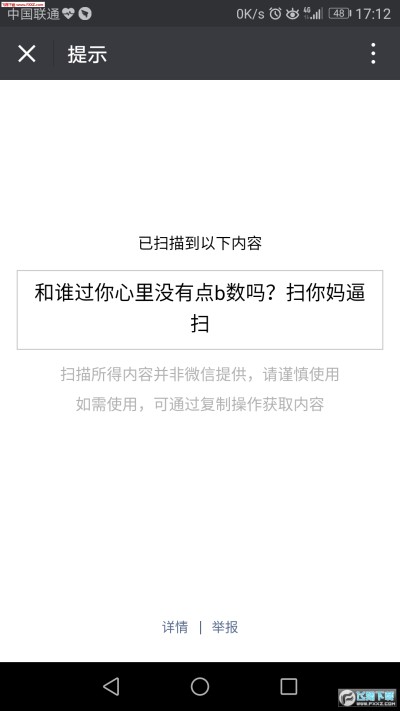 2.扫码成功后就会提示到您,已扫描的内容,各位单身汪们,看到这里,有何感慨呀!
