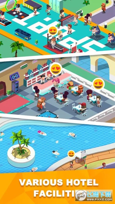 1.精心管理自己的酒店,各种场景等着你布置,逐步发挥自己的优势;