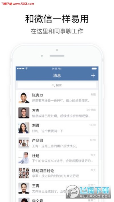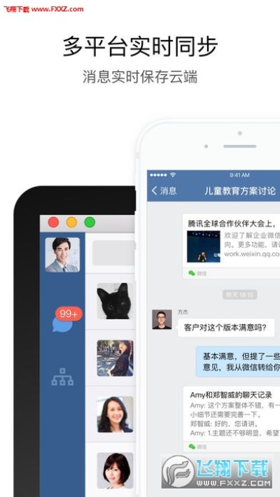 腾讯为企业打造的沟通、协同工具,多平台同步推出,提升企业即时通讯效率。熟悉的使用习惯,和微信一样易用;完整的公司通讯录,同事信息准确完善;多样的沟通方式,集成电话与邮件;专注办公场景,有回执、提醒、休息一下。