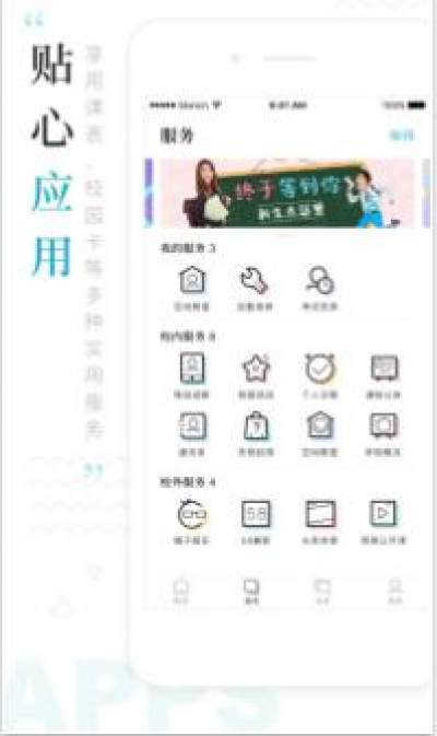 进入后,点击底部 服务 按钮,选择 我的迎新 应用