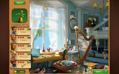 《园艺别墅:大厦装饰》是在《园艺别墅》第一部之后出的外传性质的作品,很多网站错误的将它标注为《园艺别墅2》,其实《园艺别墅2》是另一部作品。游戏的画面和玩法与前作基本一样,售卖房间中的古董以获取房屋改造的资金。每次会有五个客人提出所要的商品,由你在杂乱的房间中找出来,找的时间越久,挣的钱就越少。每一关中都会隐藏着增加额外提示次数的问号和增加金钱的金币。