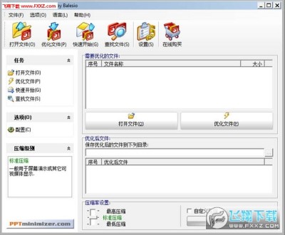 是一个PPT文档压缩工具,能够通过其智能压缩技术,显著地减少PowerPoint演示文档的大小。其实除了PPT之外,该软件也可用于压缩Word文档,效果也很不错。
