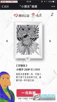 腾讯公益一元购画活动平台是由腾讯公益开发的微信公众平台,主要是以爱心捐助和公益活动为主,此次一元购画活动主要为了关爱自闭症的患者,通过他们的手绘画倾听内心最真实的声音与呐喊,每人捐赠一元钱,社会积攒能量,帮助他们走出自闭症困境,不说了,小编爱心爆棚扫描下方二维码进去公众平台。