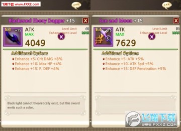 每件装备分为0星到6星,可以通过吞噬相同的装备来提高装备星级(升星会失败,越高星级升星失败率越高),同时又从common到ancient分为6个品质,所有装备都可以强化到+15(强化不会失败),每个角色还有自己的专属武器等等笔者不再赘述,对DNF熟悉的读者可以类比一下,整体上大同小异。