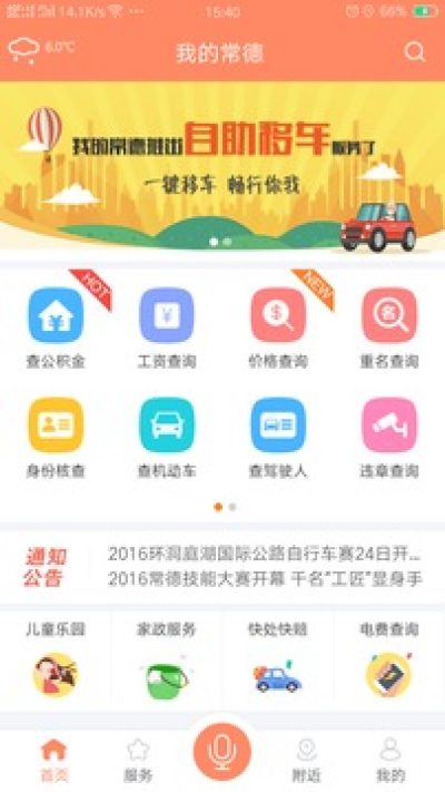 目前“我的常德”可提供便民查询、交通出行、在线预约、互动交流、教育医疗、缴费充值等便民服务。