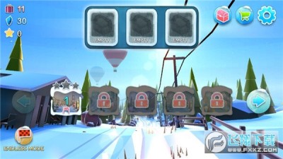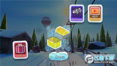 小动物可以控制驾驶各种新车辆在雪地里不断前进,获得更高的飞行分数。