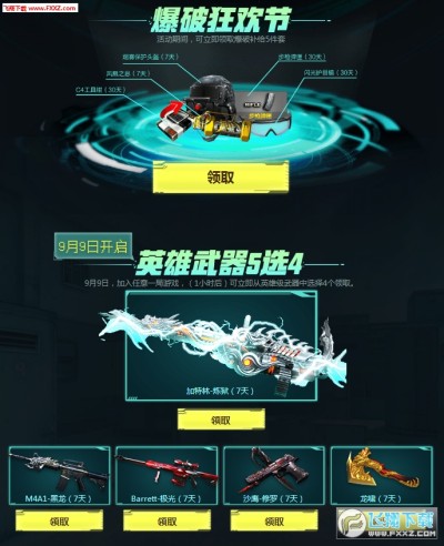 9月9日,加入任意一局游戏,(1小时后)可立即从英雄级武器中选择4个领取。