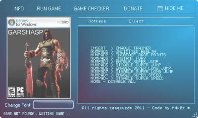修改器仅适用于使用GRATIS破解补丁的暗黑战神v1.0版.其他版本的玩家请谨慎使用.