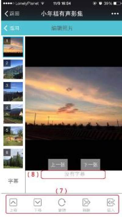 (7)编辑照片——点击“编辑照片”按钮可进入“编辑照片”页面。在这里可方便的调整照片顺序、照片方向或插入/移除照片