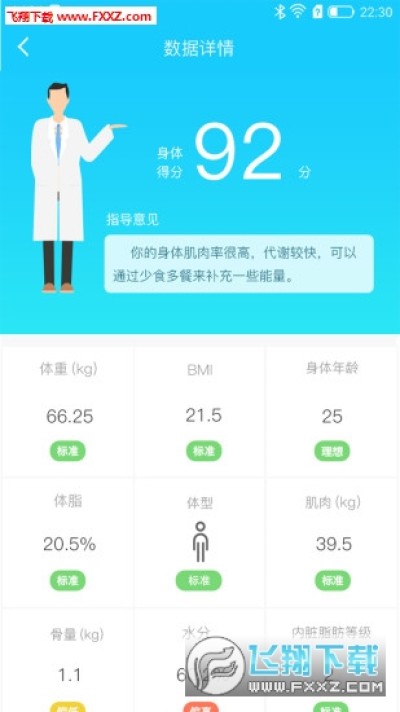 斐讯健康APP配合斐讯智能体脂秤使用可呈现体重、体脂、蛋白质等12项全身数据和脂肪率、肌肉量的10项局部数据,统计、分析、评测身体状态并基于当前的称量数据给予相应的指导意见,作为“知己”做到比你更懂你。