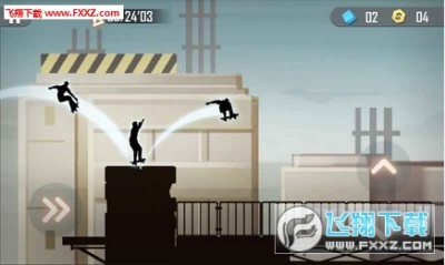 挺酷的一款剪影风格的滑板游戏,画面很有速度感,十分刺激。