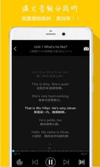 现有教材同步课文MP3,支持分段播放,还支持锁屏哦。