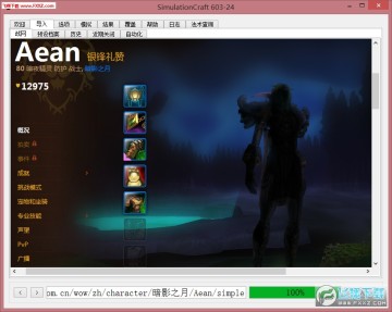 在你设置了选项中的“英雄榜地区”为CN之后,导入页面中战网子页会显示出国服官网。使用这个内置浏览器找到你要模拟的人物英雄榜。