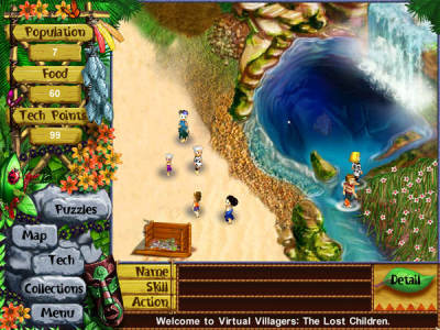 《虚拟村庄2:迷失儿童》是一款发展类的游戏,你要做的是收集资源,建造建筑,发展村庄。游戏的剧情讲述的是一个美丽的岛上,一个失落的民族建造了他们的家园,多年来他们熟悉岛屿上的一草一木,但是唯有一个黑暗的洞穴他们没有探索,一天两个村民误入了洞穴,却到达了小岛不为人知的另一面,而那里有一群失踪的孩子。