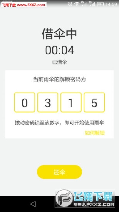 通过扫描e伞手柄上的二维码获取密码,输入后即可开锁使用,到达目的地后,在任意区域手动合拢锁伞完成归还手续。