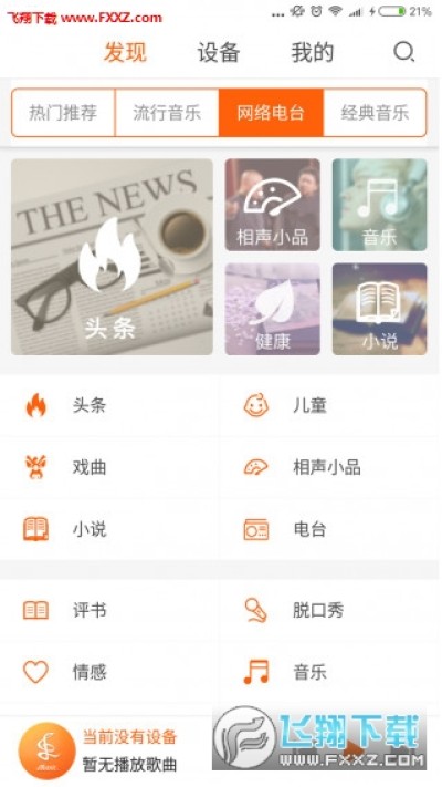 如:流行音乐、经典音乐、儿童歌曲、小说广播、电台直播等等