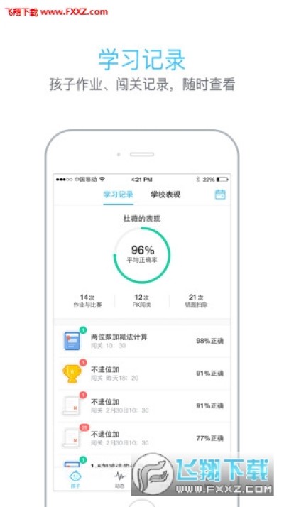 6、即时排行:随时查看自己的班级排名、学校排名、全国排名;