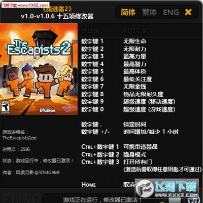 脱逃者2 v1.0-v1.0.6 十五项修改器,一共可以给玩家提供无限生命、无限耐力、最高力量、最高体质等等超实用性的功能,让你享受前所未有的快感,有兴趣的玩家朋友快来下载哦!