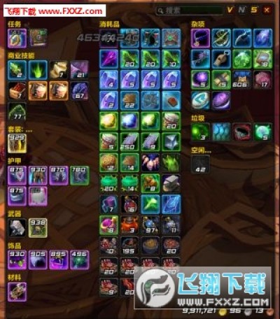 AdiBags整合分类背包插件,对所有背包进行整合,将物品按类型和用途自动分类,并自带搜索功能。