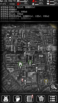 3、第一天刷资源点必出食物:食品店、医院、加油站、首推医院、工厂、五金店、服装店、武器店不要去,没有食物。其它的资源点食物少一些。