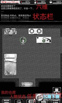 状态栏:记录你的身体状态、温度变化、发现的道具、战斗结果及人物的动作。六维过低时会有不同的提示。