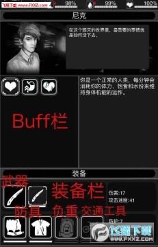 装备栏:显示你身上的装备。装备又分:武器、防具(衣服、手套)、负重及交通工具。