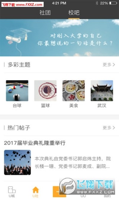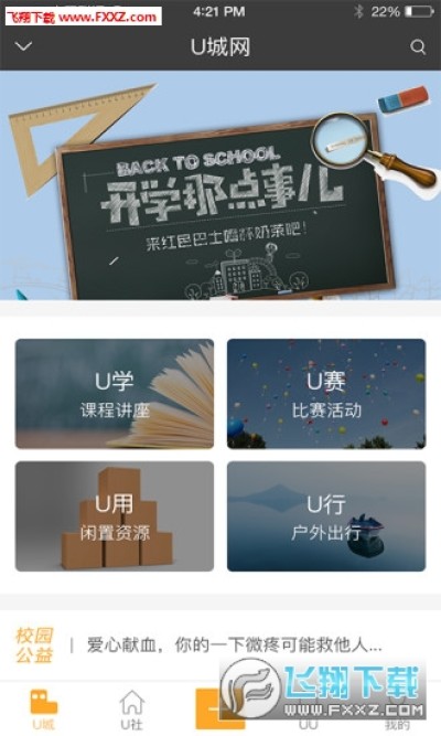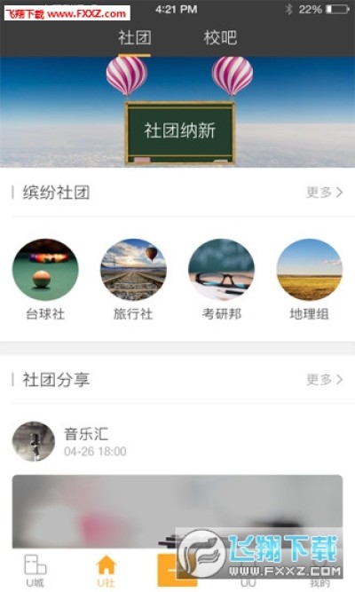 U城app是一款大学省社团软件,在U城上汇集了全国各地的社团和组织,有你最喜欢的社团活动、最适合你的社团。不管你喜欢什么,在这里都可以找到你的社团组织,各种宣传活动、社团管理、通知、相册在这里都可以完成,有需要的朋友可以下载使用。