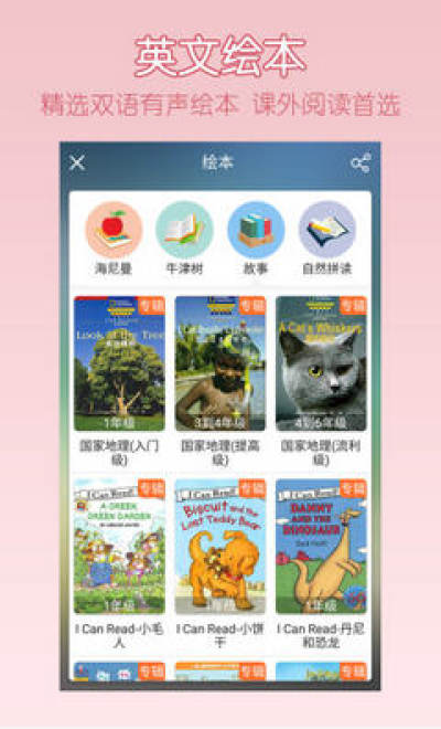 5、有声绘本:精选经典中英双语绘本、启蒙读物,孩子课外阅读的不错选择。