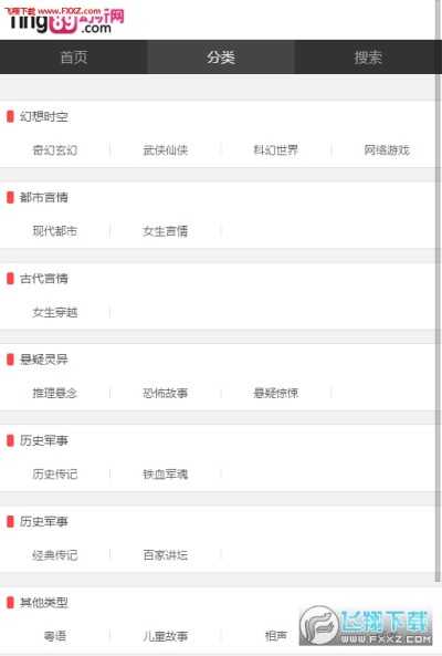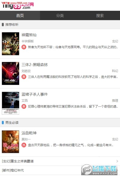 2.在首页顶端的菜单栏上,有着各种不同类型的有声资源,包括17个大类。其中必有你所爱。