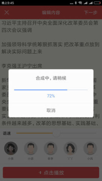 语音合成助手是一款专业文字转换成语音的配音软件,适用于商场店铺广告促销配音、地摊叫卖录音制作、英语听力音频制作、有声朗读等多种场景语音合成必备配音神器;专业文字转语音一键合成,满足您的多种需求。