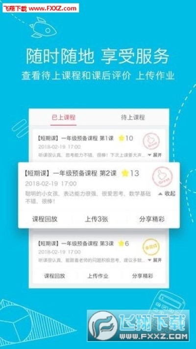 - 课后相关功能:查看老师评价以及上传作业