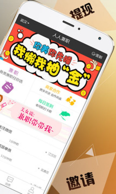 人人兼职app是一款非常好用的手机兼职软件,这款软件提供多种兼职机会,主要针对的就是在校大学生或者是各种悠闲的人员,提供多种兼职工作,用户可以自行选择,人人兼职软件还可以邀请好友一起玩,快来试试吧!